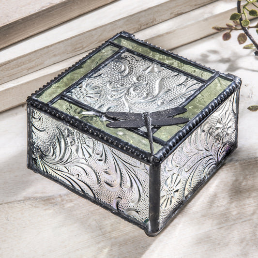 Dragonfly Jewelry Box 141 in Green Stained Glass