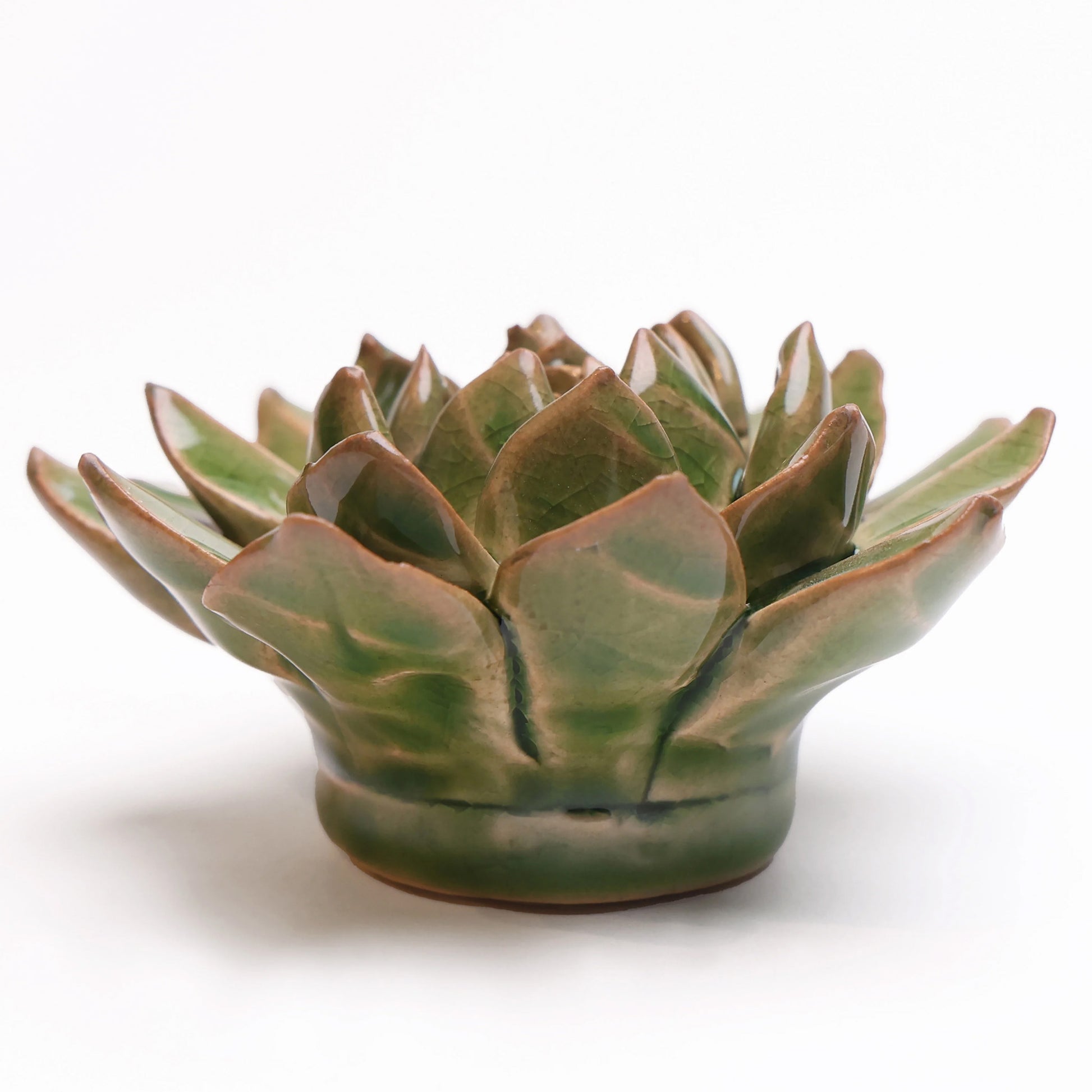 Green Succulent Small, made to last forever without water! These ceramic Wall Art flowers need no watering nor fertilizer. Just add a screw to your wall and hang your flower(s).. Viola! Peruse our large ceramic flowers grouping for creating your own bold wall art. Each piece uniquely enhances your decor with its impressive size and artistic design. Perfect for decor or giffs, our handcrafted pieces add elegance to any space. Be creative! Start your arrangement today.