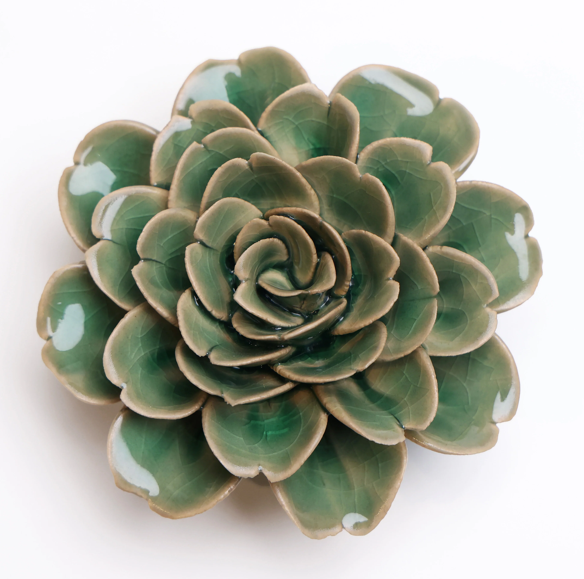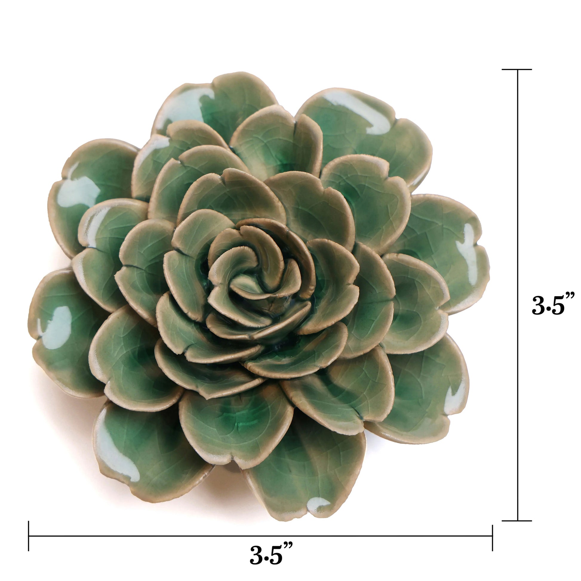 Pastel Green Small Flower is made to last forever without water! These ceramic Wall Art flowers need no watering nor fertilizer. Just add a screw to your wall and hang your flower(s).. Viola! Peruse our large ceramic flowers grouping for creating your own bold wall art. Each piece uniquely enhances your decor with its impressive size and artistic design. Perfect for decor or gifts, our handcrafted pieces add elegance to any space. Be creative! Start your arrangement today.