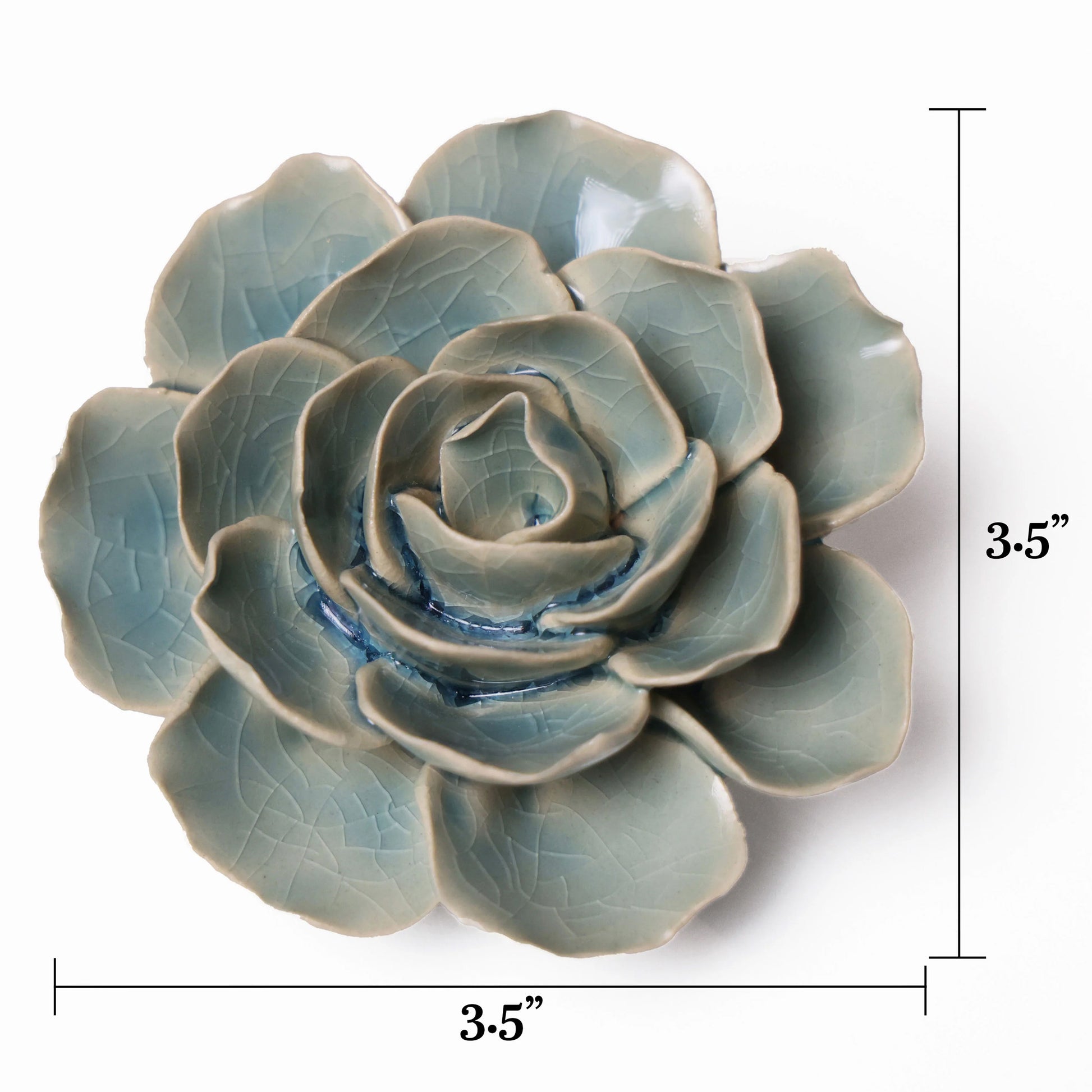 Teal Ranunculus Small, made to last forever without water! These ceramic Wall Art flowers need no watering nor fertilizer. Just add a screw to your wall and hang your flower(s).. Viola! Peruse our large ceramic flowers grouping for creating your own bold wall art. Each piece uniquely enhances your decor with its impressive size and artistic design. Perfect for decor or gifts, our handcrafted pieces add elegance to any space. Be creative! Start your arrangement today.