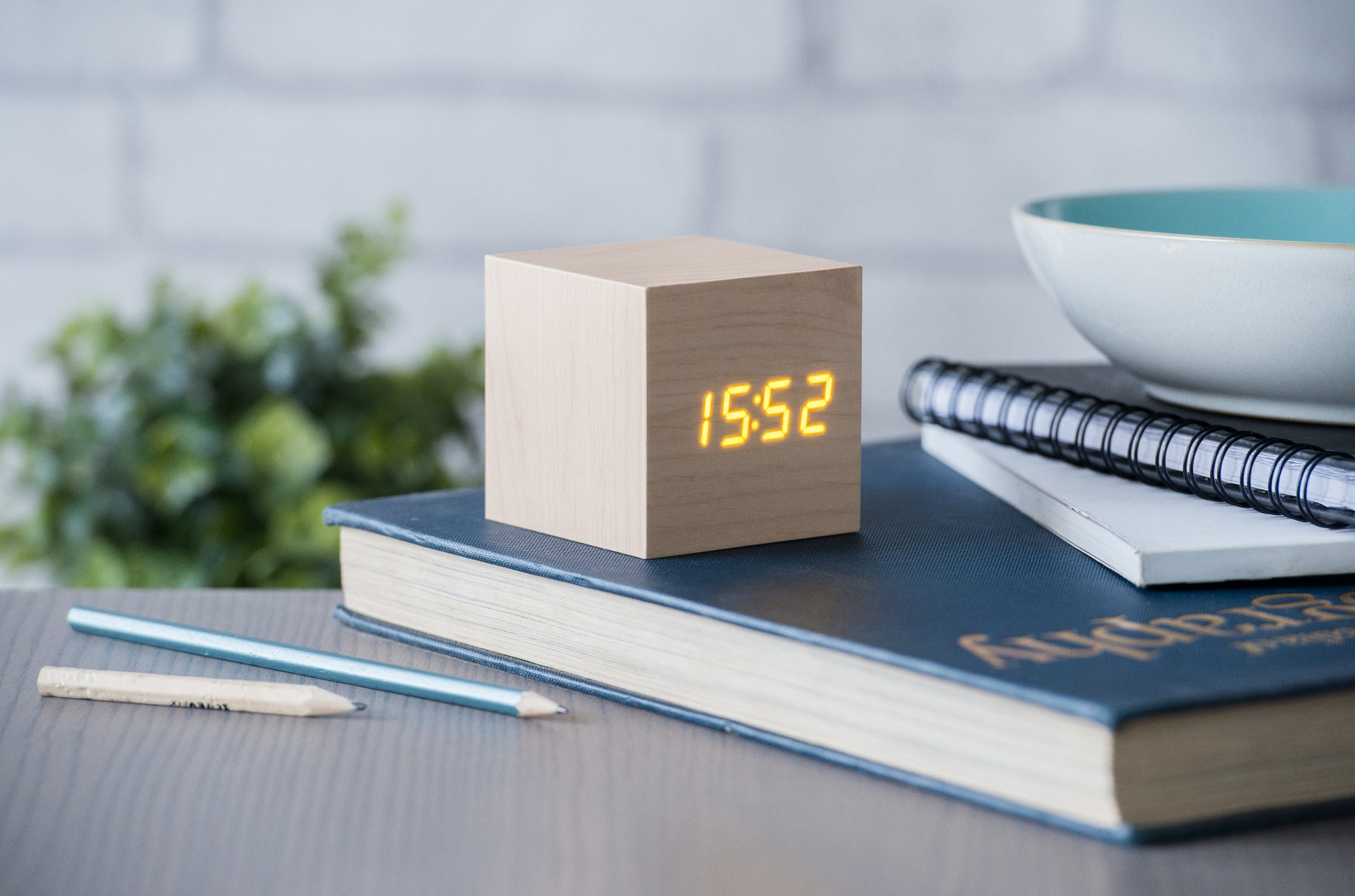 Time can be smart, clever, stylish and simply functional. Sound or touch activated, the Cube Click Clock displays the time, date and room temperature alternately with the click of your fingers or a gentle tap nearby. A brilliantly clever and unique home accessory, especially if you don’t like a bright light shining in your bedroom at night. This just might be the perfect gift!