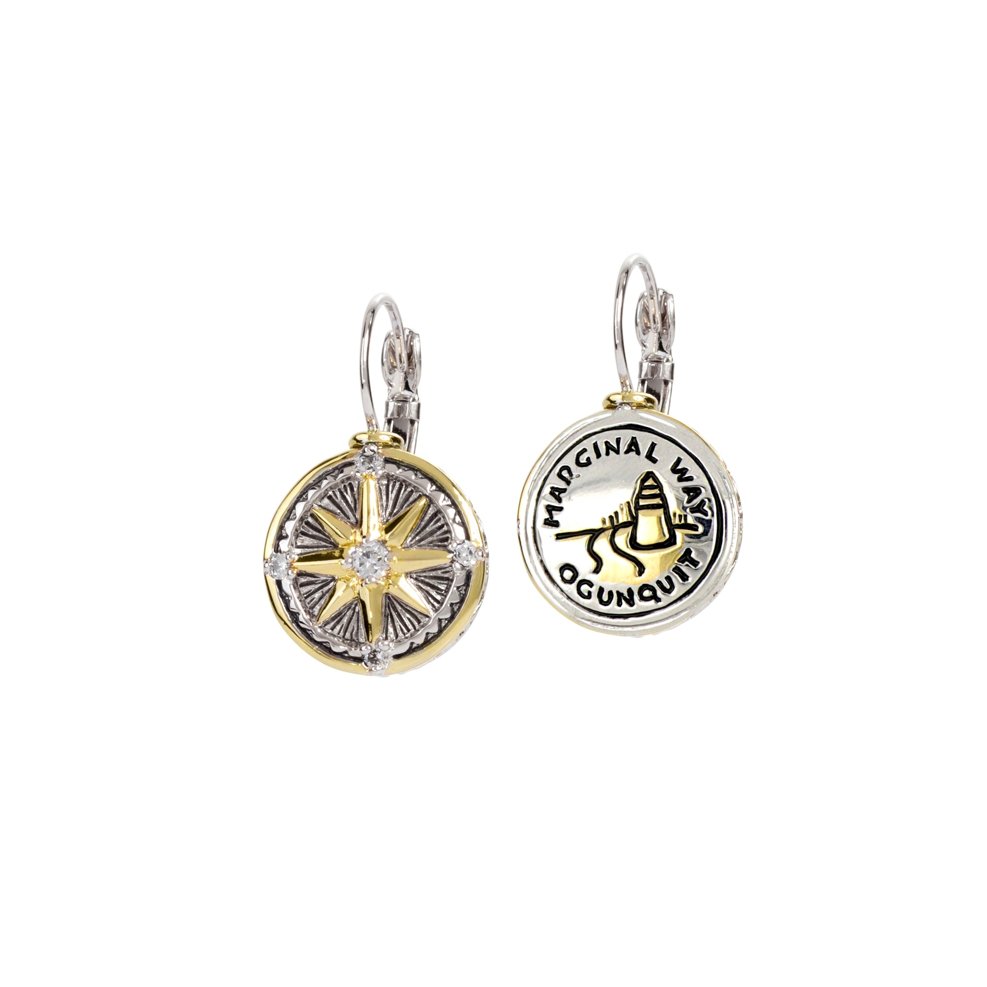 Created exclusively for On The Main, our Marginal Way / Compass Rose lever back earrings are one of our perennial bestsellers. Earrings are two sided featuring a beautiful compass rose with cubic zirconium stone on one side and our custom Marginal Way Ogunquit art with lighthouse on the other. The two-toned finish makes it easy and fun to pair with mixed metal fine jewelry. Wear everyday and/or for special occasions. A beautiful gift for yourself and others.