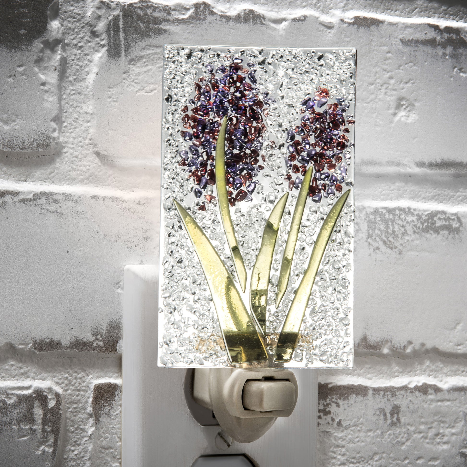 Each fused glass night light is handcrafted by skilled artisans who meticulously cut and arrange pieces of stained glass into the desired pattern. The colorful pieces are then fired in a kiln, softening the edges and forming a permanent bond between the layers. Bring a little outdoors into your bathroom, bedroom, or kitchen with this decorative night light.