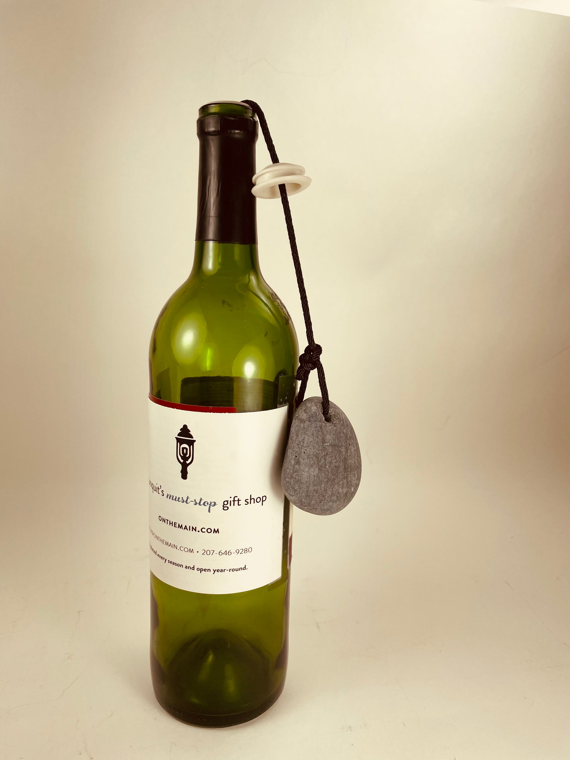 - Open your bottle and re-cork it with the appropriate size stopper (there are 2 sizes attached)