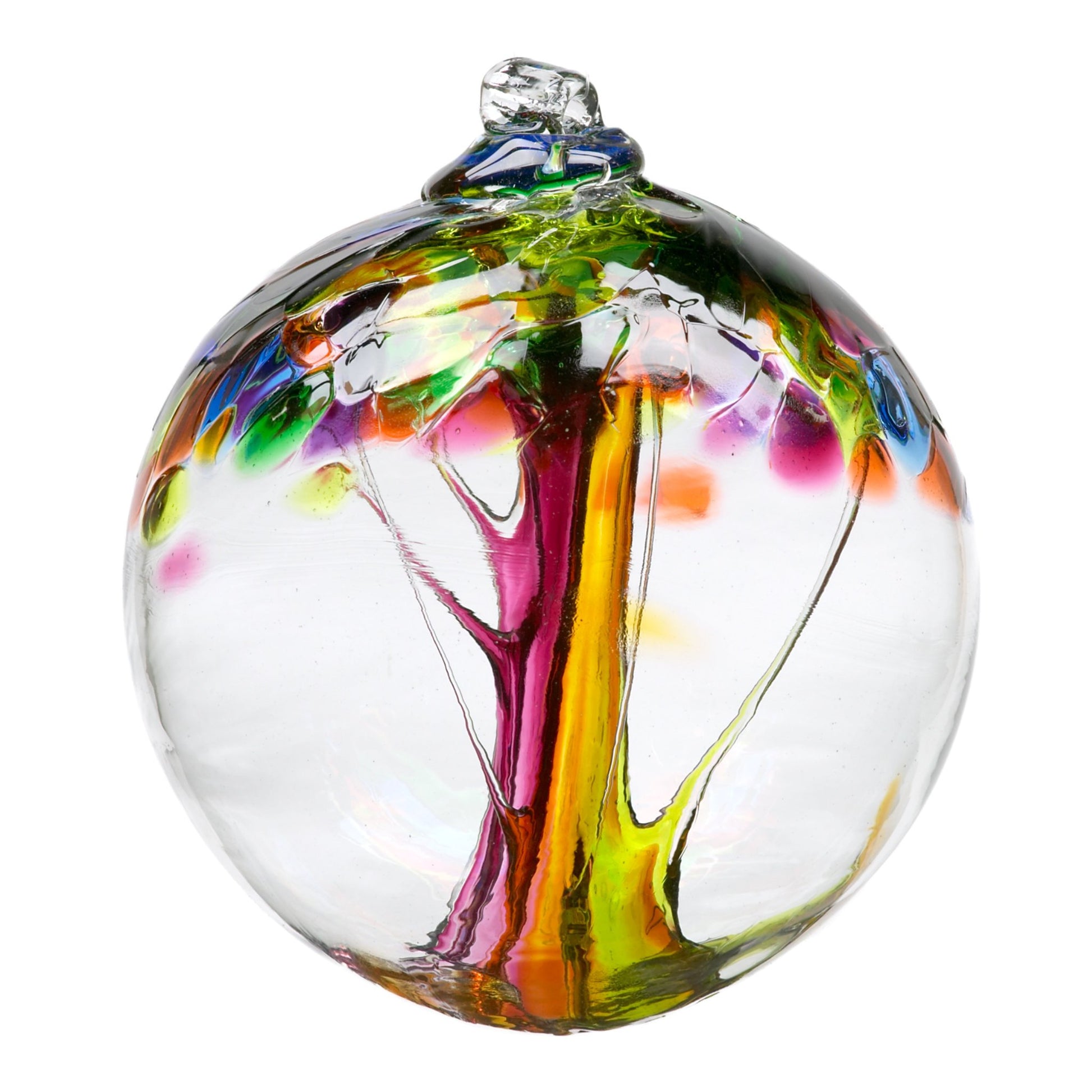 No two of these hand-blown glass orbs are alike. Each orb comes with a special story card explaining its unique inspiration. Place them on a counter or hang them up.
